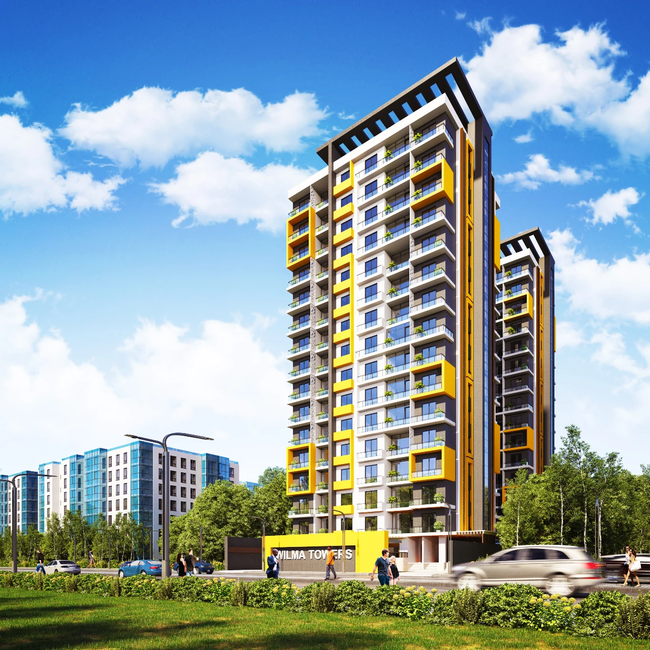 Wilma Towers boasts a stunning collection of studios, 1, 2, and 3-bedroom apartments. Rising 15 floors across two magnificent towers, these residences redefine contemporary living with their innovative “New-Era Architecture” and superior European-style finishes. Step inside and discover an oasis of calm, where the thoughtfully designed interiors seamlessly blend with the captivating exterior, creating an environment that caters to your every desire.